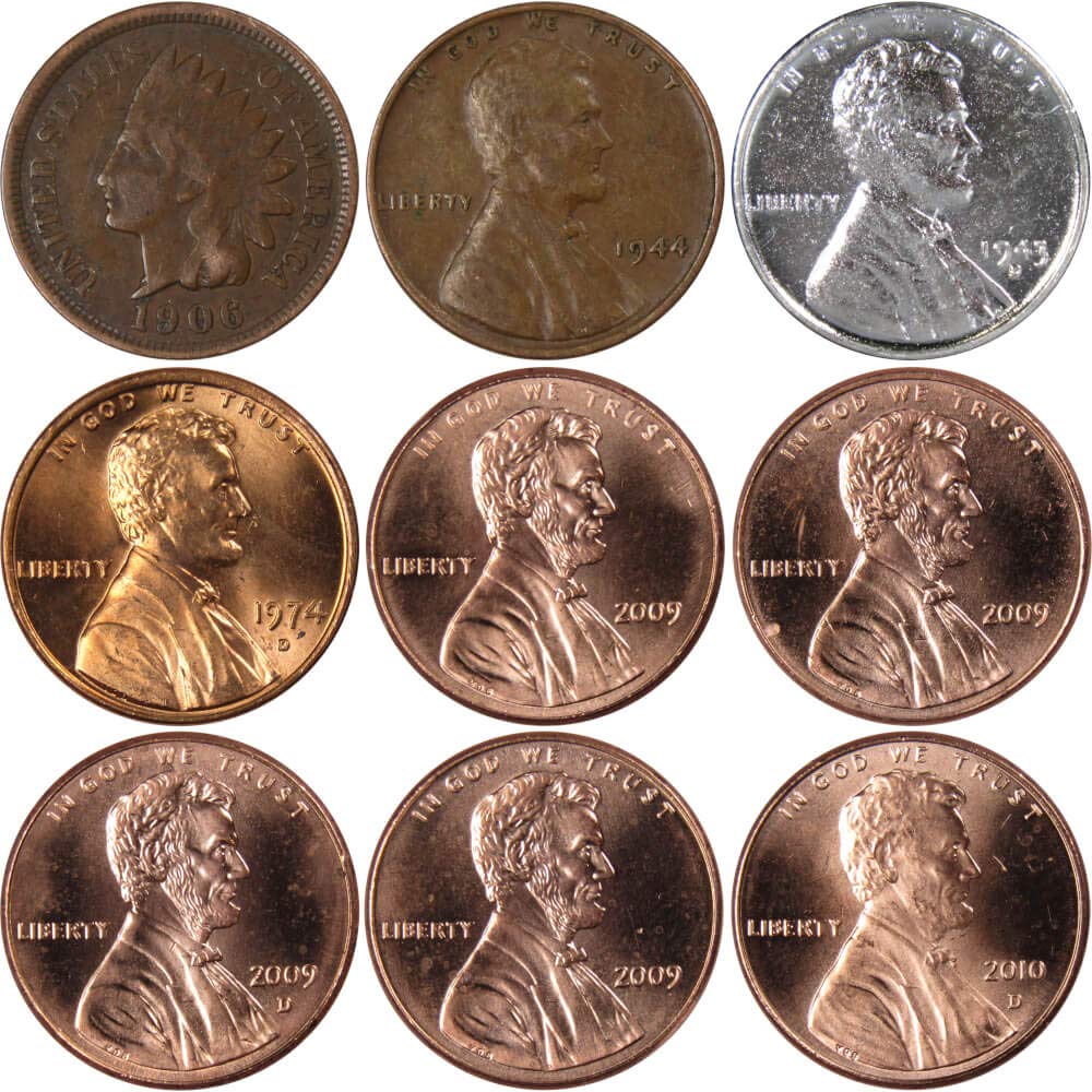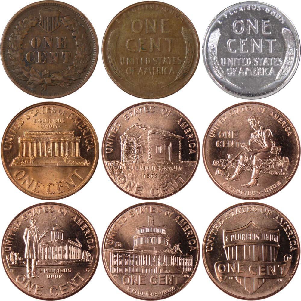 150 Years Indian & Lincoln Penny Designs – 9-Coin Collectible Set Historic US Cent Collection