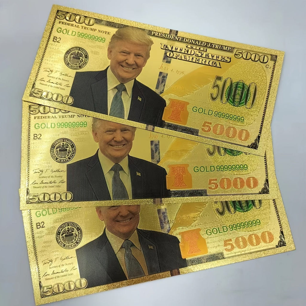3 Pcs 5000 U.S. Dollars President of The United States Trump Money Gold Bills