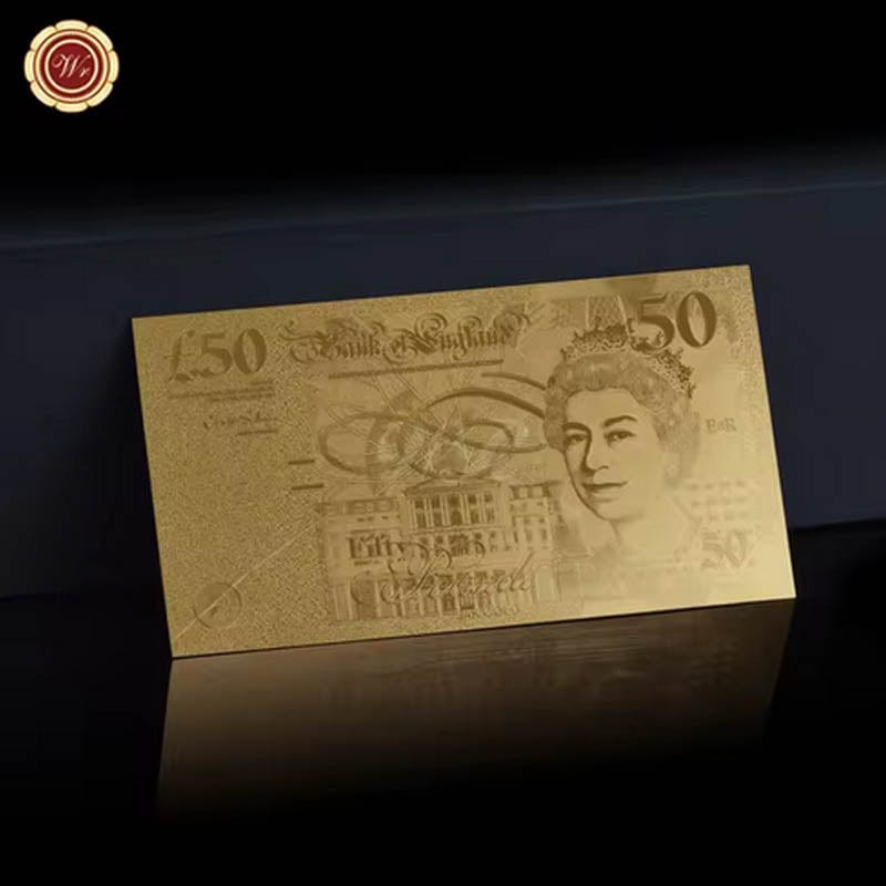 50 Pounds United Kindom Gold Banknotes - Queen Elizabeth Ii Banknote Prop Money Gbp Euro Bill Bank Note
