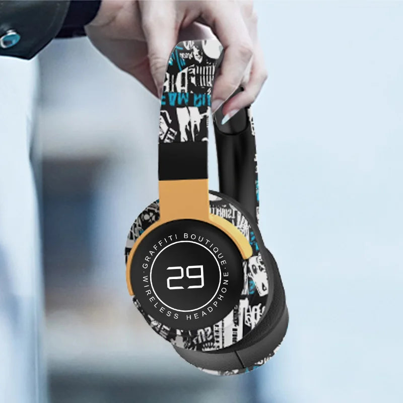 Fashionable Graffiti Headphones Wireless Bluetooth 5.1 Bass Built-in HD Mic DJ In Mic Light For PS4 PS5 PC Phone Gamer Earphone