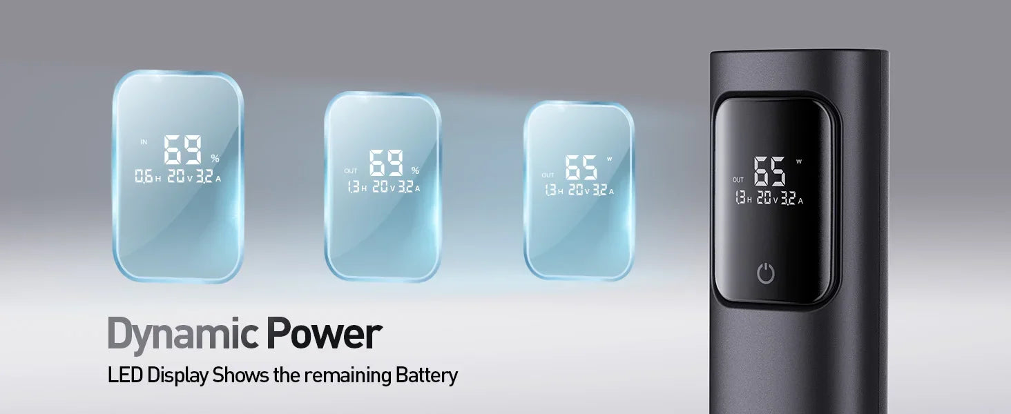 Laptop Power Bank 20000mAh - 65W 3-Port Portable Charger with USB-C Cable and PD QC Fast Charging