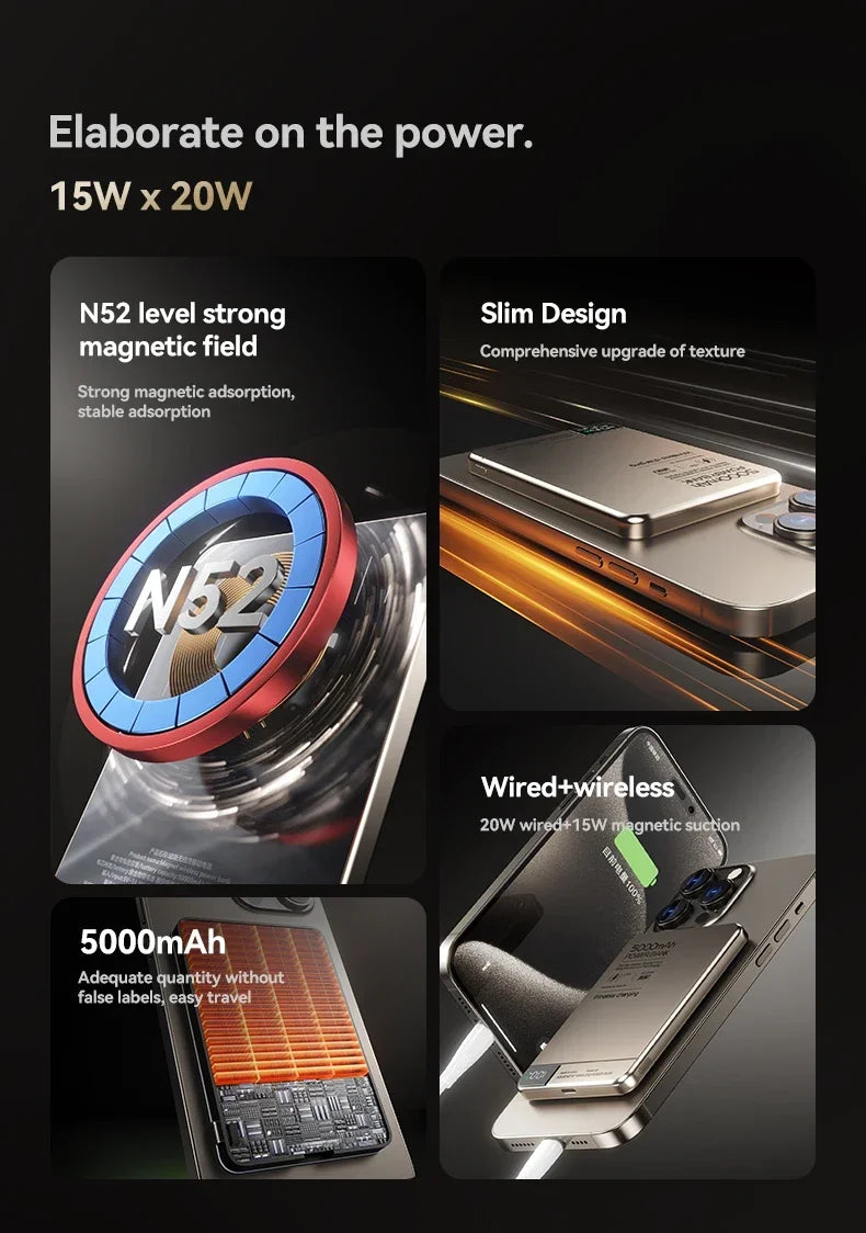 Ultra-Slim Wireless Power Bank 10000mAh - High Capacity External Battery for iPhone 15/14/13/12